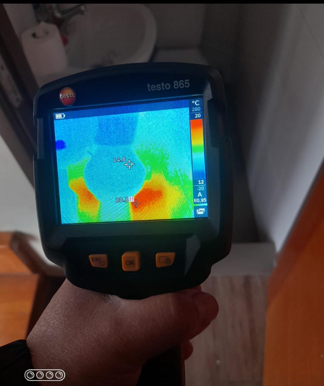 La cámara termo gráfica es capaz de medir la radiación infrarroja y a partir de dichas mediciones realizar cálculos de la temperatura. Con esta cámara se puede tener un mapa preciso de todas las tuberías de agua y detectar con precisión dónde está el origen del problema.